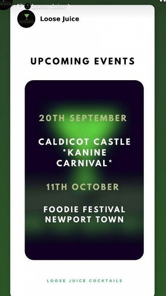 Why not come and join us at one of our upcoming events. We will be selling our wonderful cocktails, so why not come for a few hours of enjoyment.